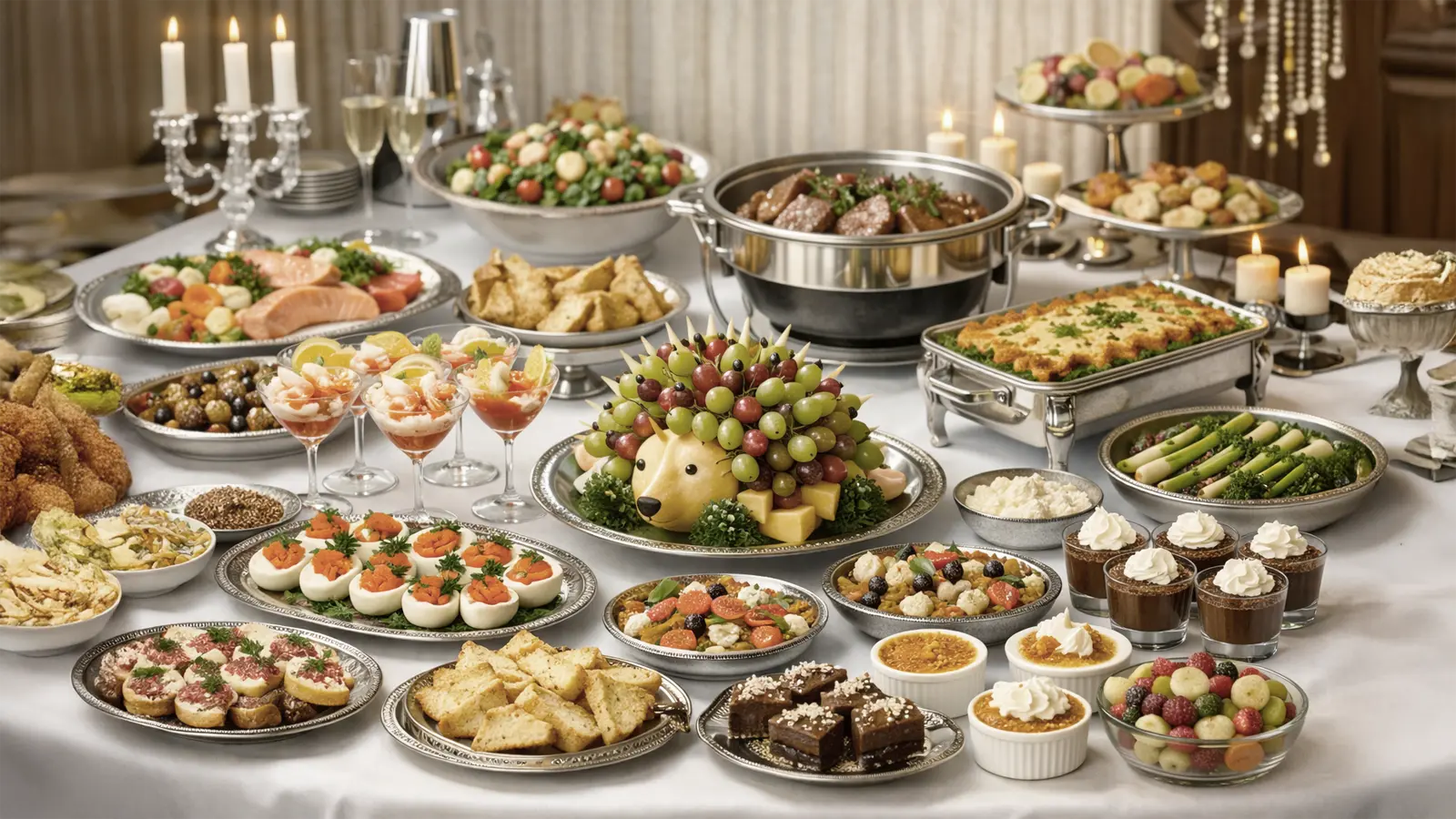 Ein kulinarisches Konzept für eine Sechzigerjahre‑Party orientiert sich an den typischen Geschmackswelten und Präsentationsformen dieses Jahrzehnts, das von eleganten Häppchen, internationalen Einflüssen und farbenfrohen Retro‑Kreationen geprägt war. Kleine, stilvolle Snacks eignen sich hervorragend für den Auftakt und bringen sofort das Flair der 60er auf den Tisch. Beliebt waren Canapés mit Lachs oder Roastbeef, gefüllte Eier, Käse‑Trauben‑Spieße, Mini‑Sandwiches oder Garnelenhäppchen. Solche Fingerfoods stimmen die Gäste auf das Motto ein und schaffen einen charmanten Einstieg in den Abend. Für das Dinner bietet sich ein mehrgängiges Menü an, das den nostalgischen Charakter der Zeit aufgreift. Als Vorspeise passen Gerichte wie Tomatensuppe, Krabbencocktail oder ein klassischer Salat mit Ziegenkäse und Nüssen. Beim Hauptgang spiegeln Speisen wie Rinderfilet, Lachs auf Gemüse, Hähnchen à la King oder eine vegetarische Gemüselasagne den Mix aus Eleganz und Bodenständigkeit wider, der die 60er‑Jahre‑Küche auszeichnete. Den süßen Abschluss bilden Desserts wie Crêpes Suzette, Obstsalat mit Vanillecreme, Schokoladenpudding oder kleine Törtchen, die den Retro‑Charme perfekt abrunden. Eine Kombination aus nostalgischen Klassikern und modernen Interpretationen sorgt dafür, dass das Menü sowohl authentisch als auch zeitgemäß wirkt und die Gäste kulinarisch in das Lebensgefühl der Sixties eintauchen lässt.